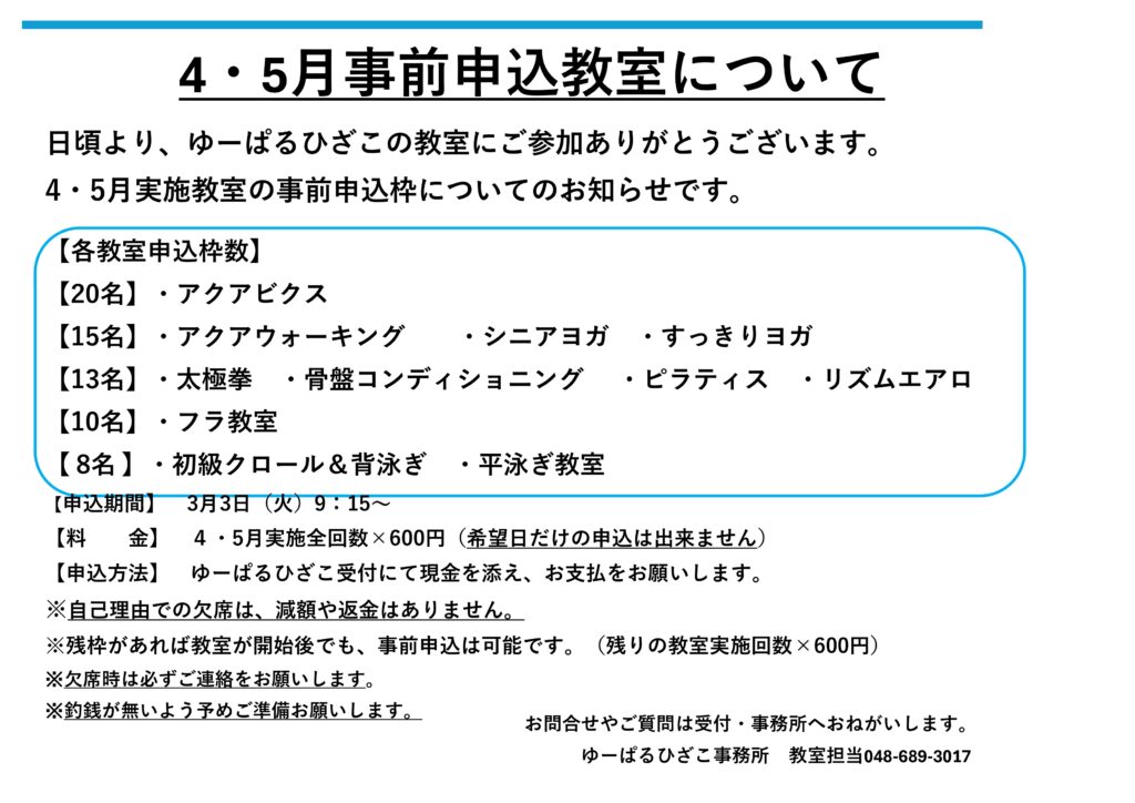 【自主事業】4・5月分教室の事前申込について
