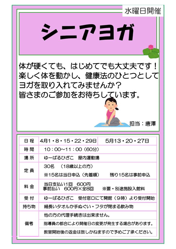 【自主事業】シニアヨガ(4・5月水曜日開催)
