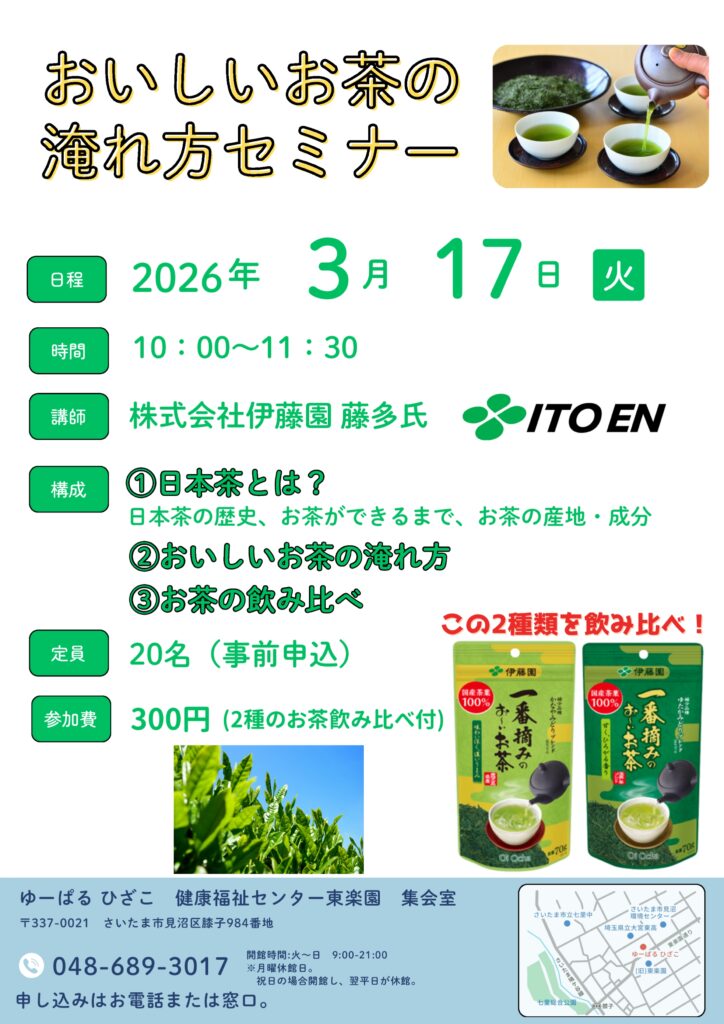 【自主事業】おいしいお茶の淹れ方セミナー(2026年3月17日)