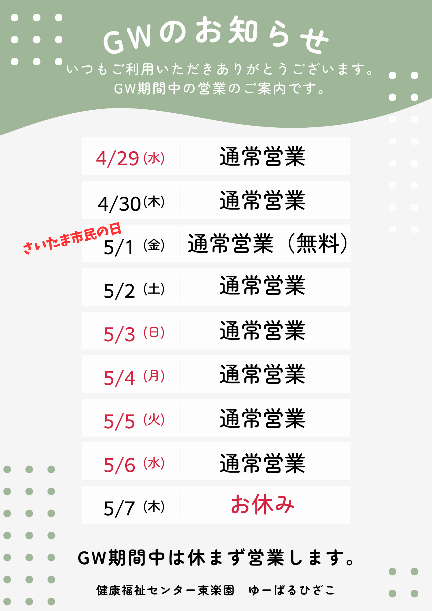 GW期間中の営業のお知らせ