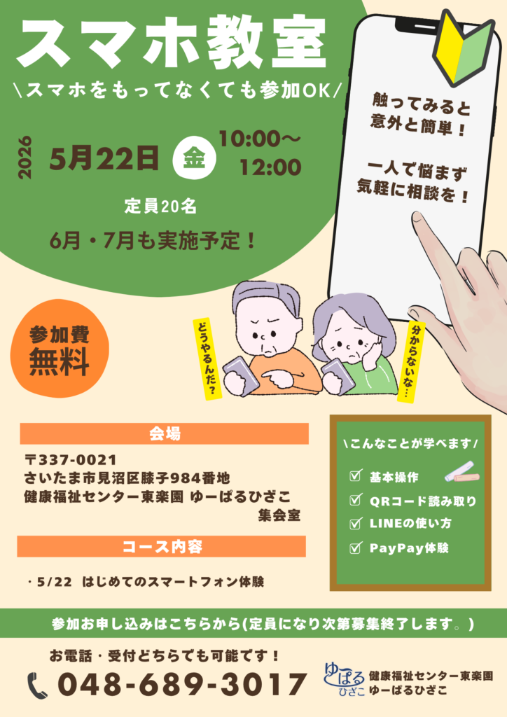 【自主事業】スマホ教室(はじめてのスマートフォン体験)(2026年5月22日)