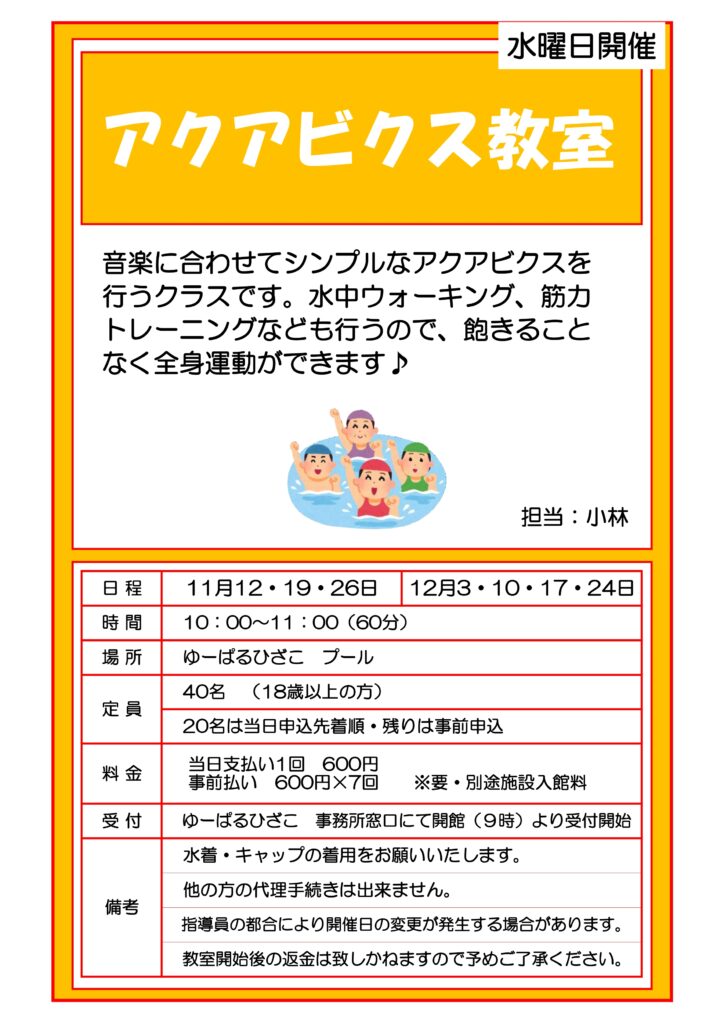 【自主事業】アクアビクス教室(11・12月水曜日開催)
