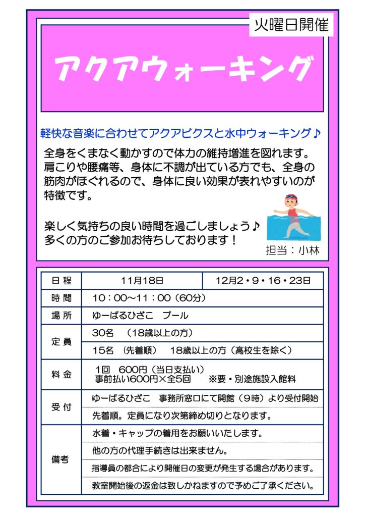 【自主事業】アクアウォーキング(11・12月火曜日開催)