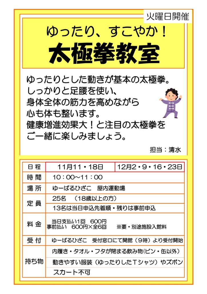 【自主事業】太極拳講座(11・12月火曜日開催)