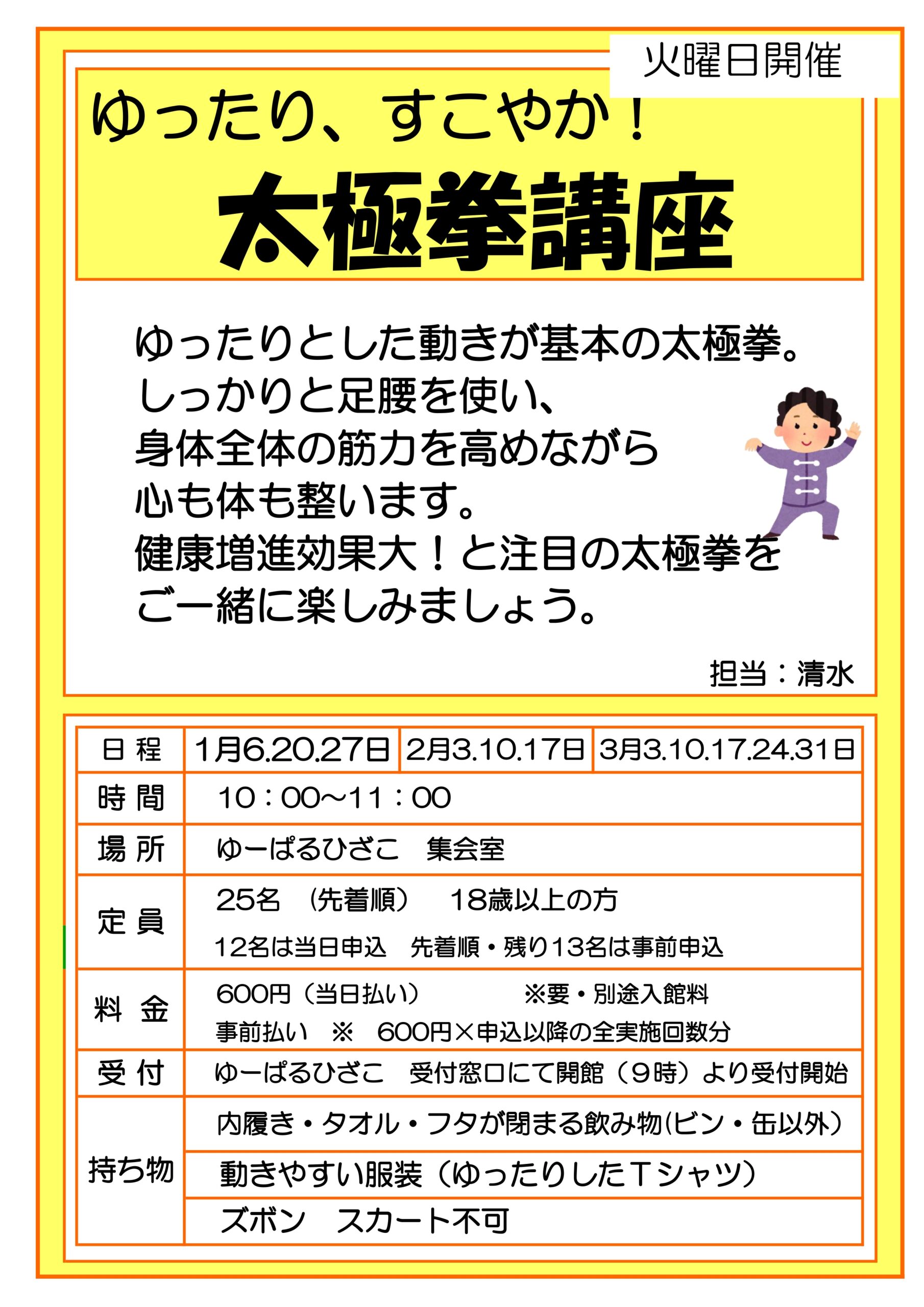 【自主事業】太極拳講座(1・2・3月火曜日開催)