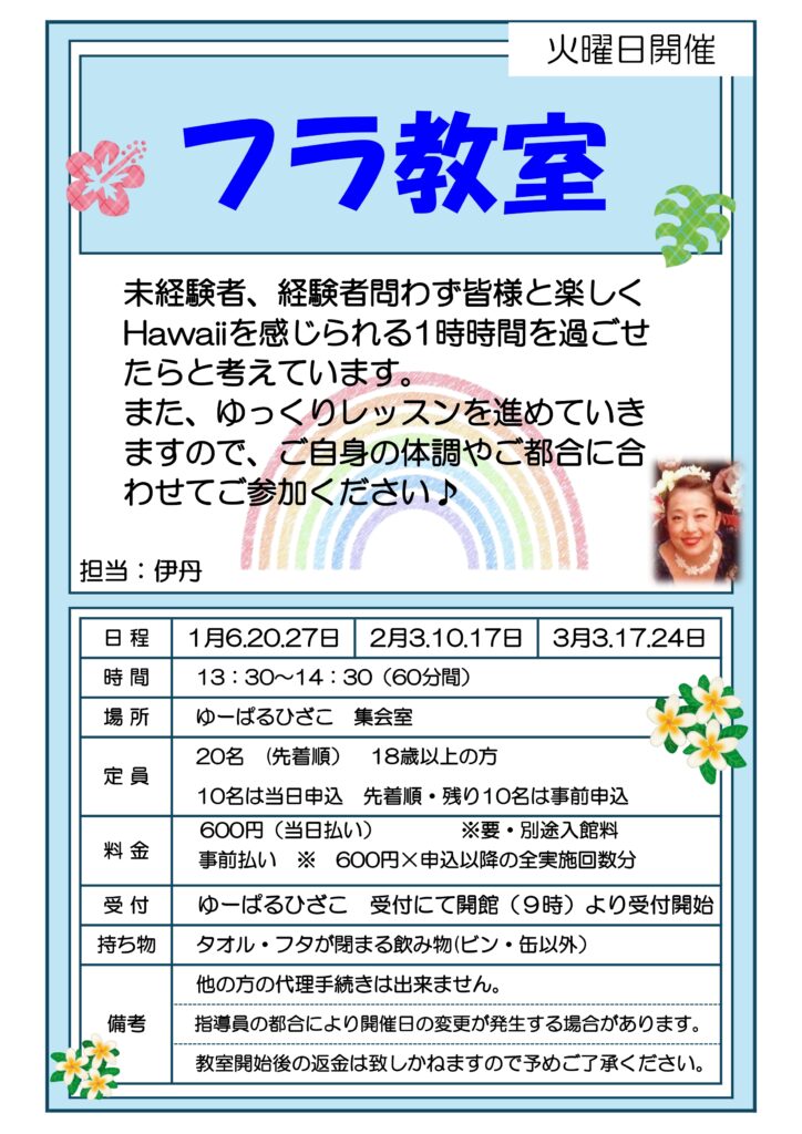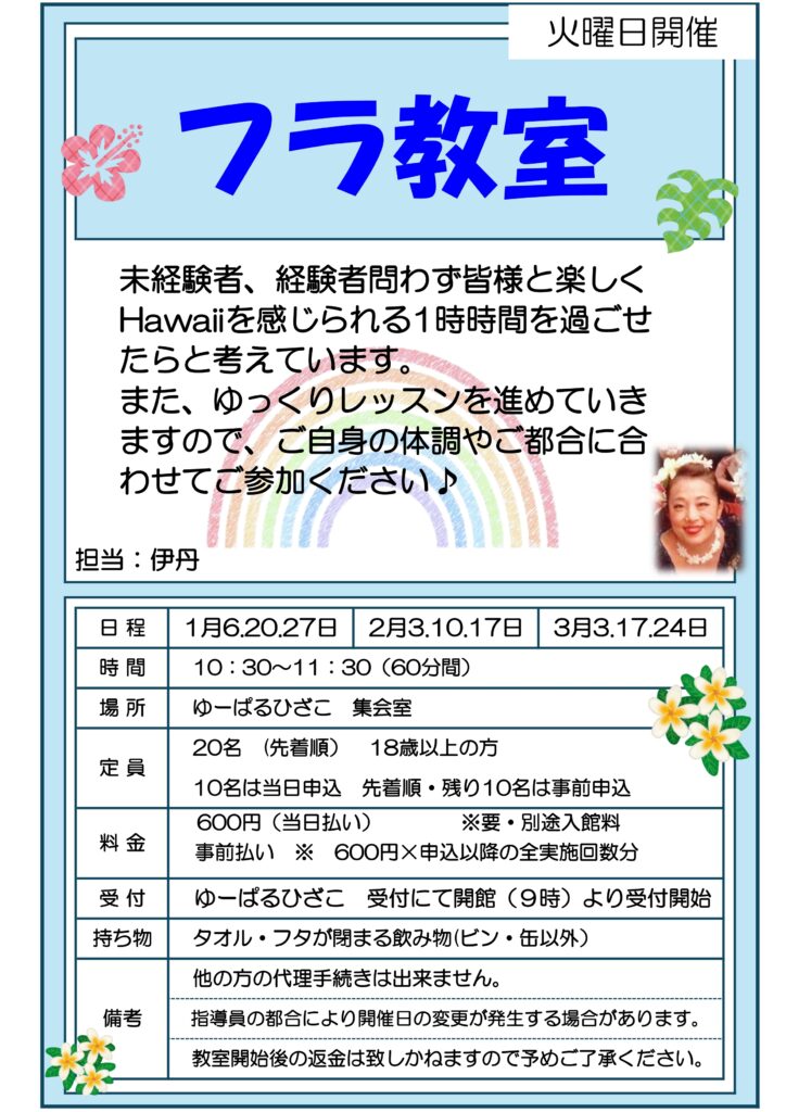 【自主事業】フラ教室(1・2・3月火曜日開催)