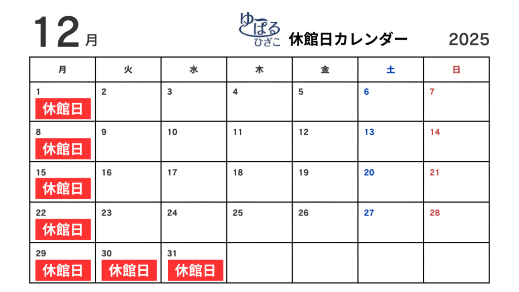 2026年の営業再開は2026年1月4日(日)となります。※1/5(月)は月曜日のため通常休館。