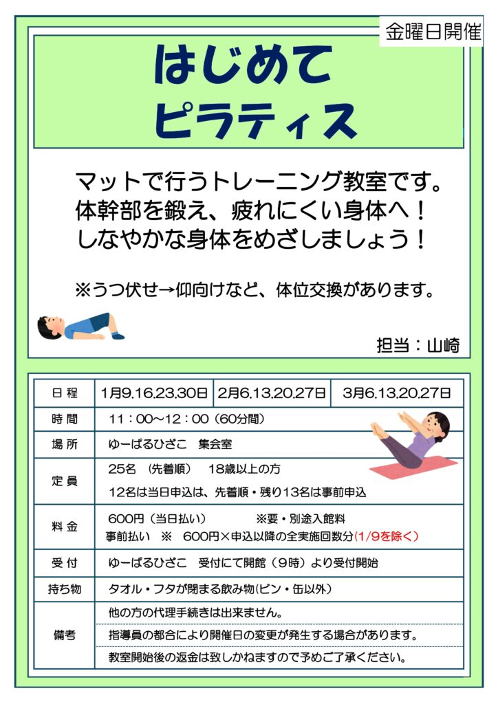 【自主事業】はじめてピラティス(1・2・3月金曜日開催)
