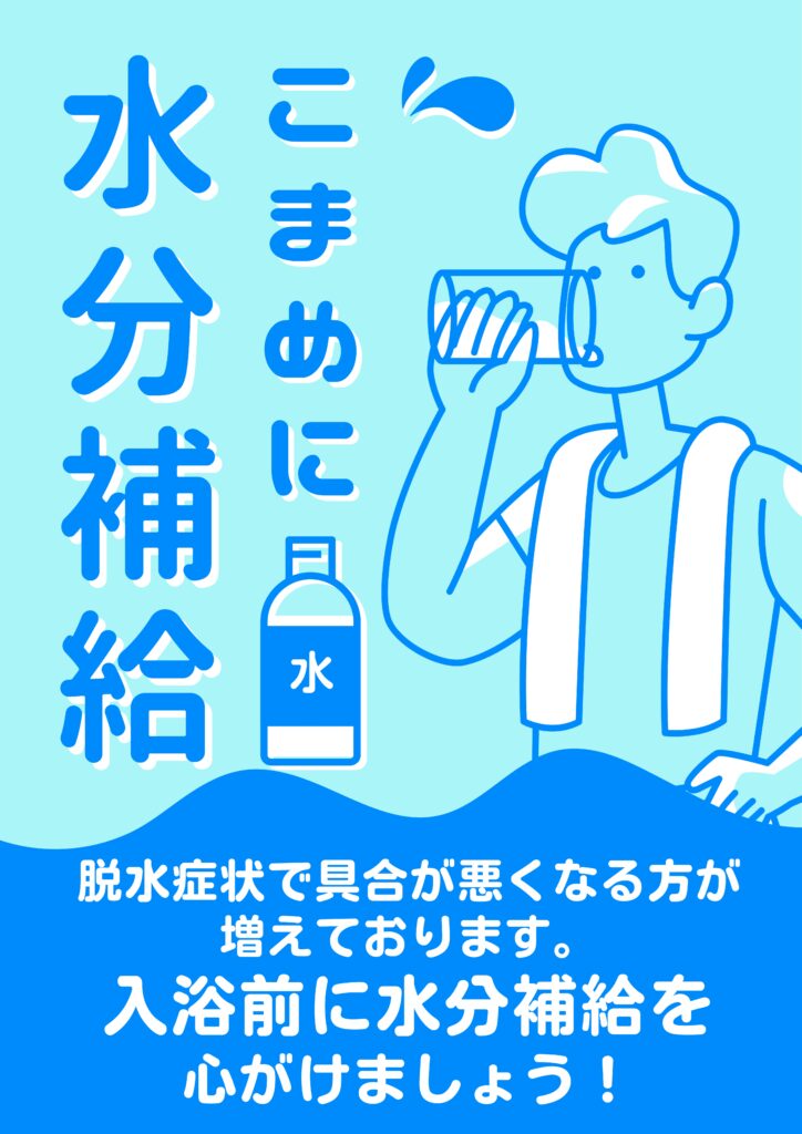 特に浴室に入られる前にはこまめな水分補給を心がけていただければ幸いです。