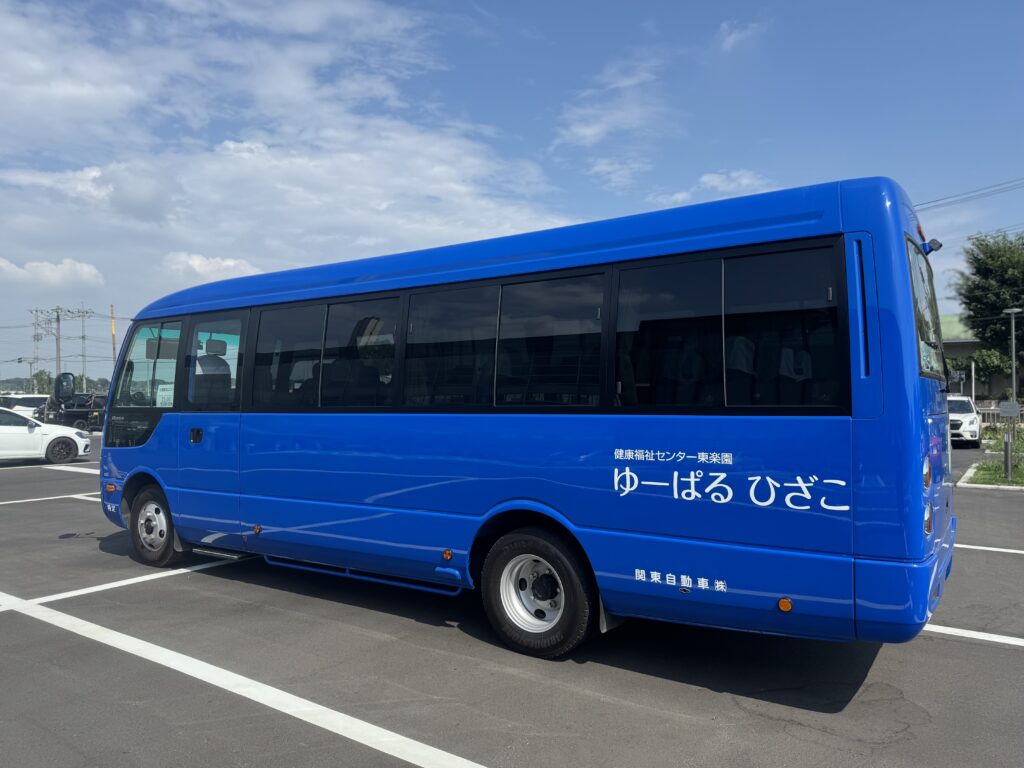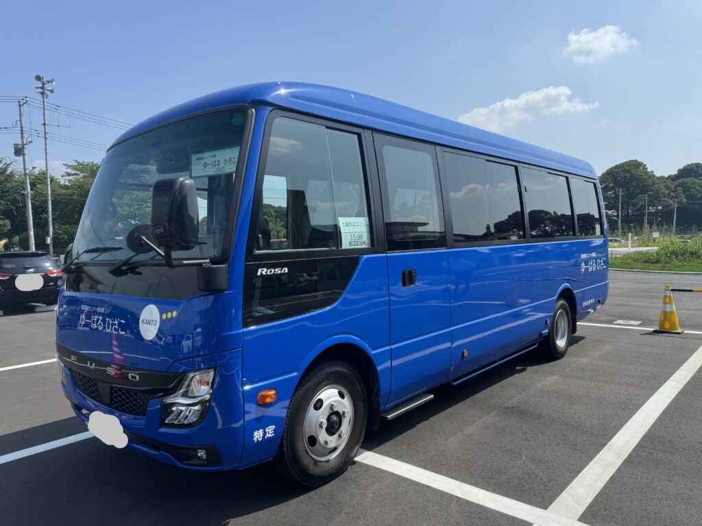 目印として、青いラッピングバスに白文字で「ゆーぱる ひざこ」と記載された車両が該当バスとなっております。